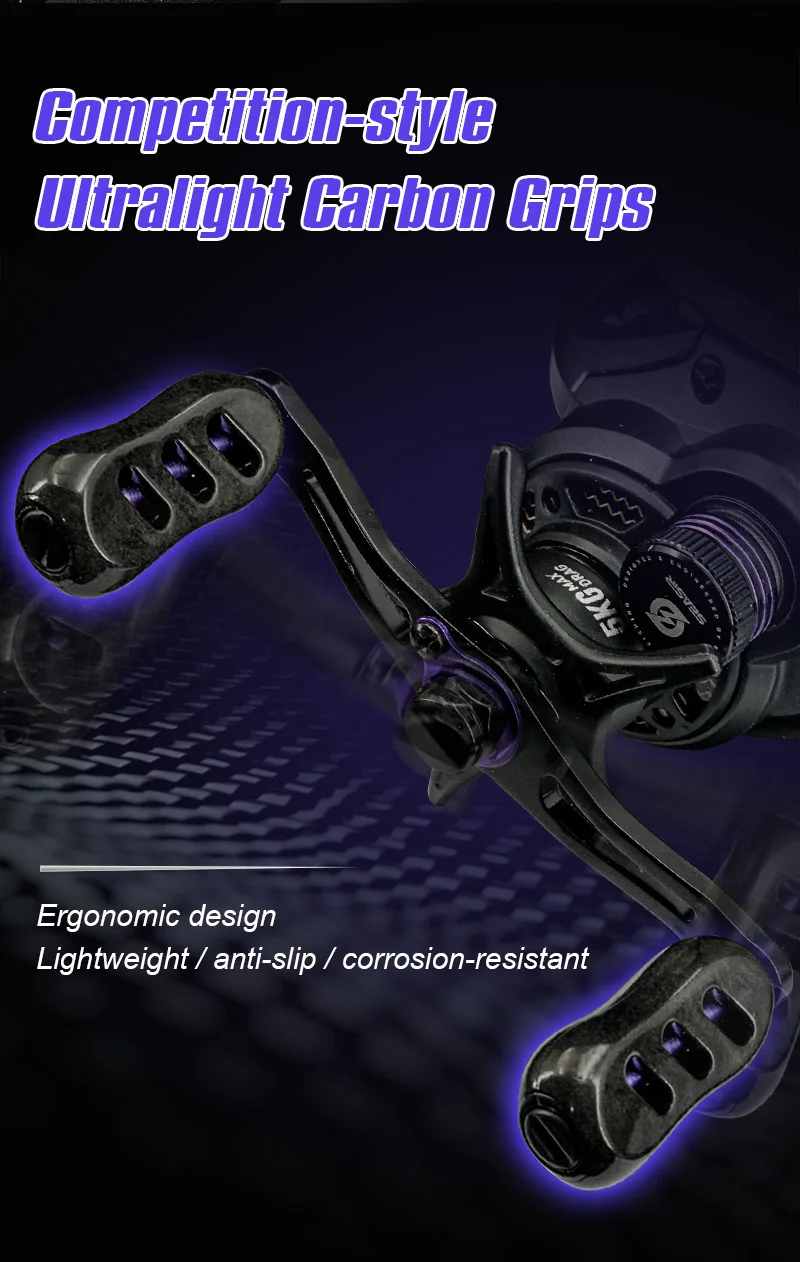 Ergonomically designed and comfortable carbon fiber grips are lightweight, non-slip, and corrosion-resistant, making them a popular choice among professional anglers.