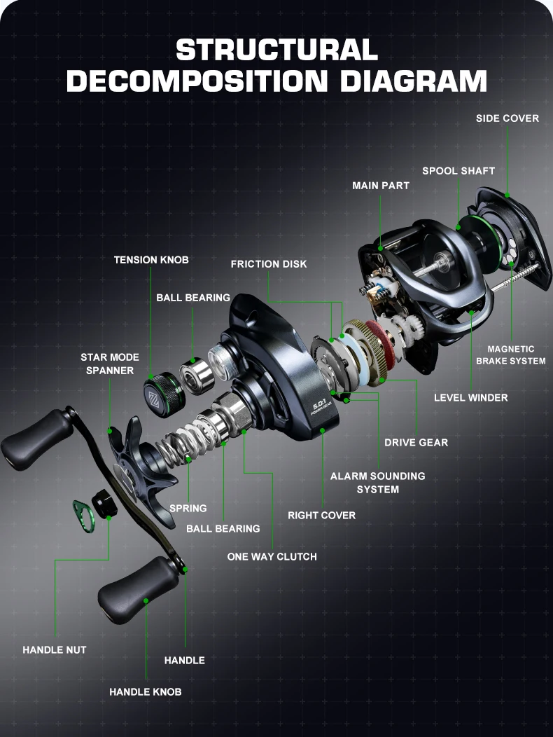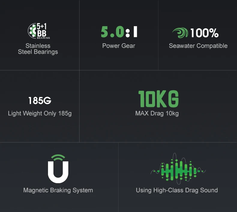 6.Super Power Drag,Up to 11KG drag power.You can easily catch large fish such as octopus, cod, mackerel, and sea bass.The strongest power among scrolls of the same level.
