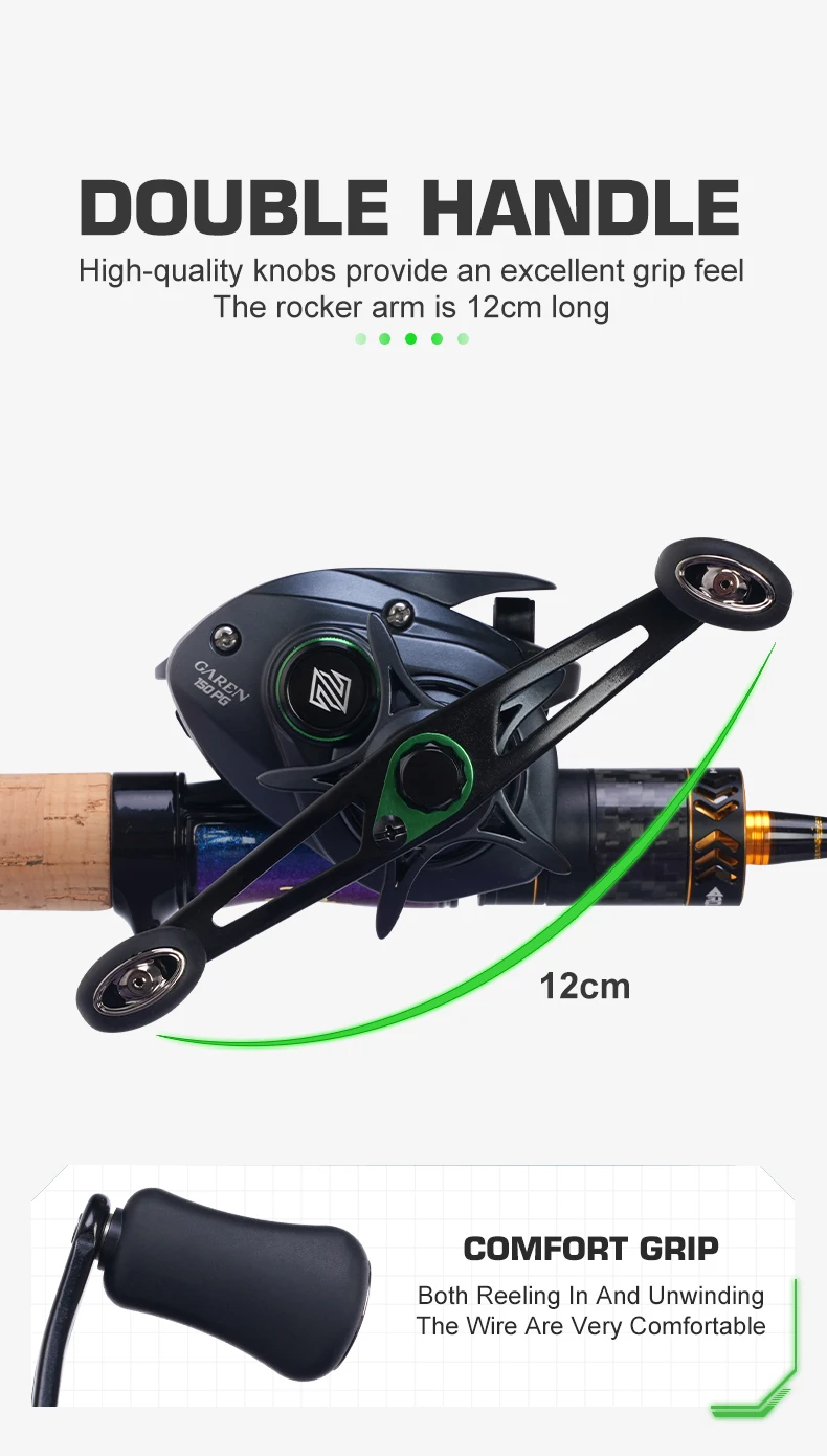 1.Double Handle,High-quality knobs provide an excellent grip feel.The rocker arm is 12cm long,Both reeling in and unwinding the wire are very comfortable.