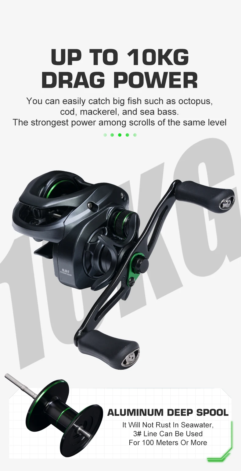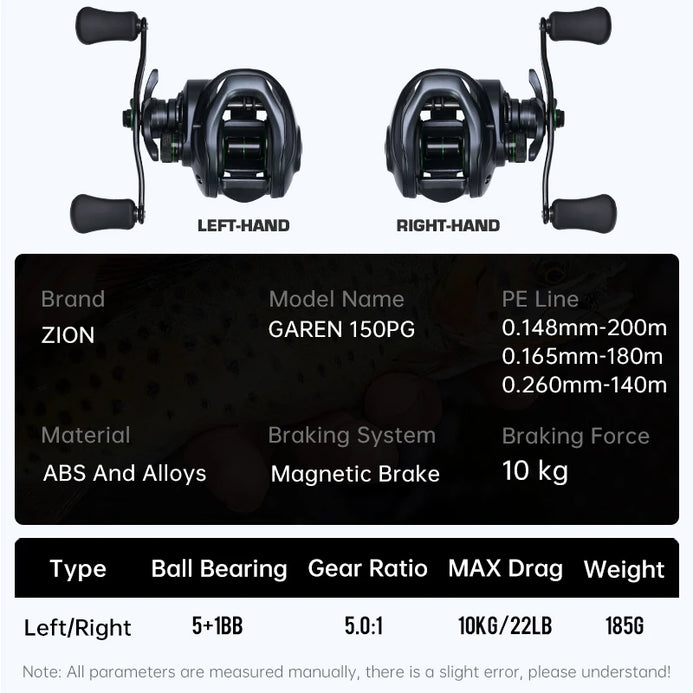 ZION GAREN 150PG Power Gear Fishing Bait Reel 10kg MAX Drag 5.0:1 Magnetic Braking System 5+1Bearing 185g Saltwater Fishing Reel