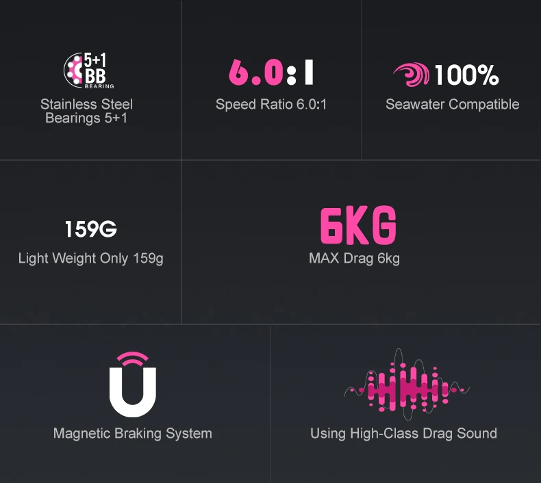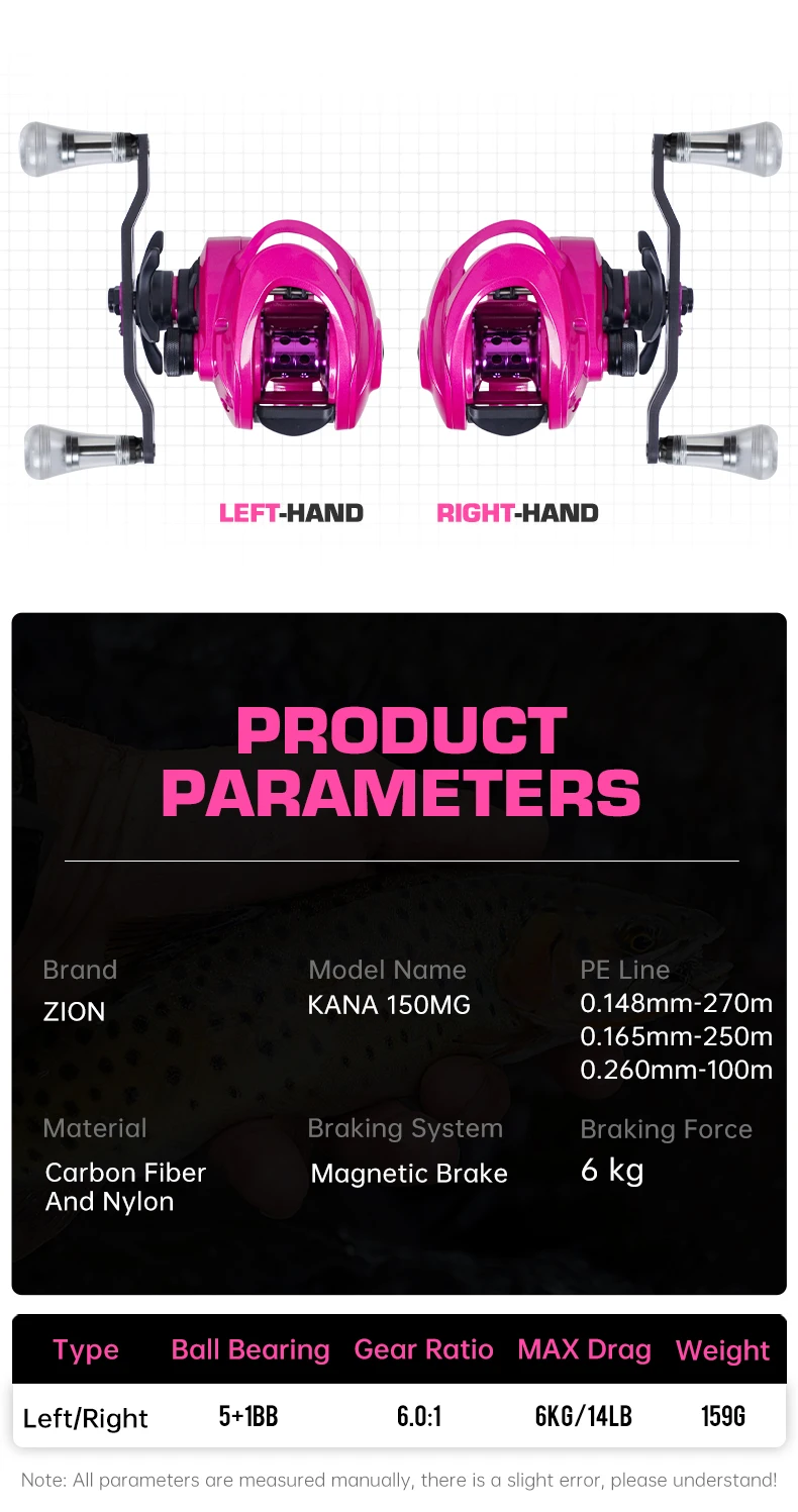 ZION KANA 150MG Medium Gear Fishing Bait Reel 6kg MAX Drag 6.0:1 Magnetic Braking System 5+1Bearing 159g Saltwater Fishing Reel