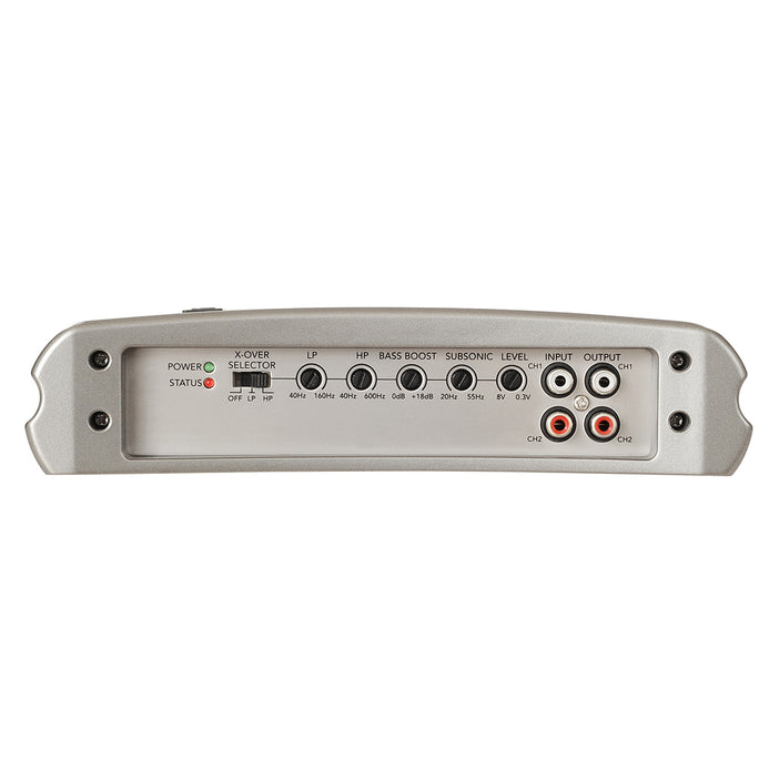 - 2 Channels - Capable of powering 2 speakers, a sub (bridged) or 4 speakers in parallel.