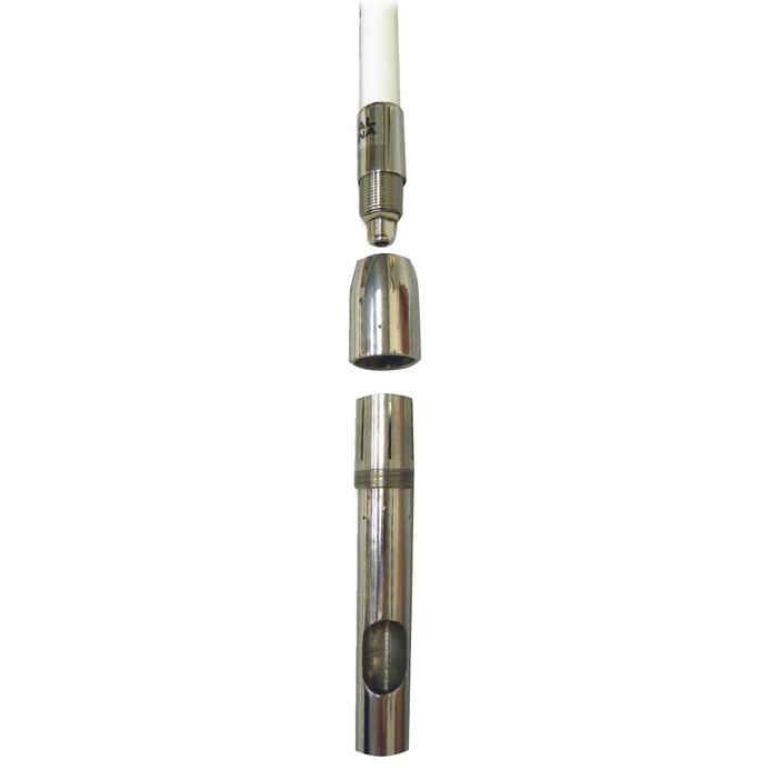 Digital Antenna's 1100 series antennas with a collet ferrule ensure no cable twisting and allows the antenna to be removed when needed. This new technique allows the use of existing coax or a new run of premium low loss cable. A taperedcollet securely locks Digital Antenna's 1100 series antenna to the bottom ferrule which mounts standard 1"-14 threads. All marine antennas are manufactured in the USA with 316 surgical stainless, UV stable high gloss finish and precision soldered components.