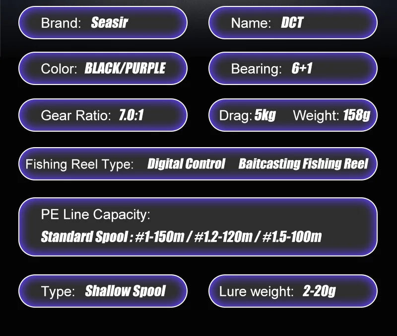 Seasir Commando Carbon BFS Ultralight Baitcasting Reel 7.1:1 6+1BB 9Kg Max Drag Seasir DCT DC Ultralight BFS Baitcasting Reel 158g 7.0:1 6+1BB Seasir M1 Ultralight BFS Baitcasting Reel 135g 10+1BB 7.6:1 2 Spools