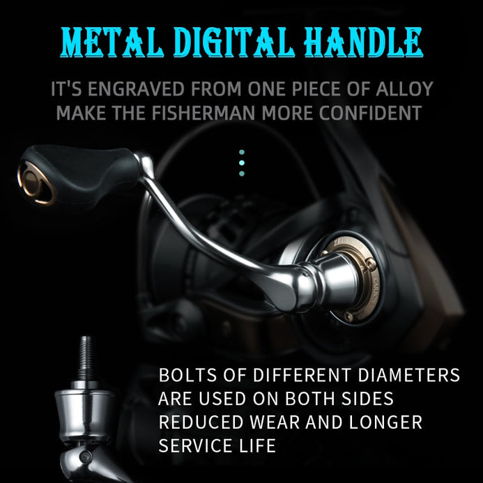 1. Light & Power Technology: Ultra-thin Body Design and CNC Machined Aluminum Spool is ideal for long time fishing.