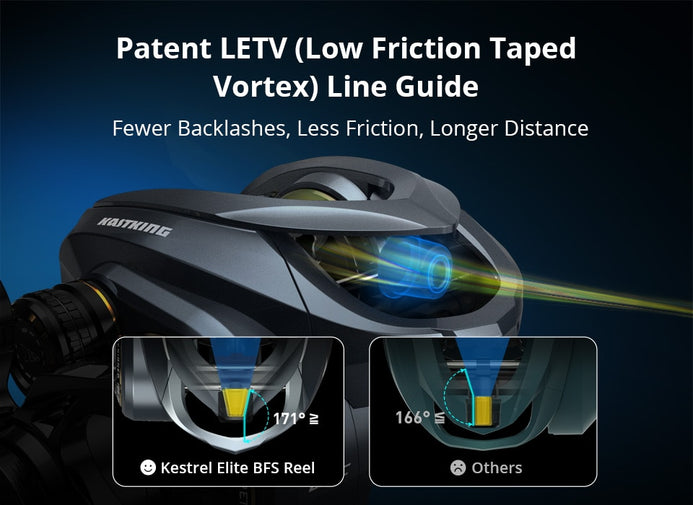 ADVANCED LINE GUIDE - The patented LFTV (Low Friction Tapered Vortex) Line Guide decreases the angle at which the line enters the guide, limiting friction during casts. Straighter line and reduced friction results in fewer backlashes and greater distance on casts, both of which are qualities highly desirable among serious finesse anglers.