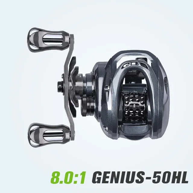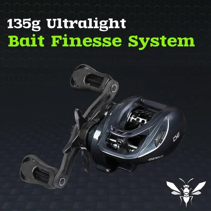 Introducing the Tsurinoya GENIUS 135g Ultralight BFS FINESSE Baitcasting Reel - a powerful and lightweight fishing reel designed for high-speed casting and precision. With its 8.0:1 gear ratio and with a 4kg max drag, this reel allows you to easily and accurately target your desired catch. Perfect for BFS anglers who want a reliable and efficient reel for their fishing adventures.