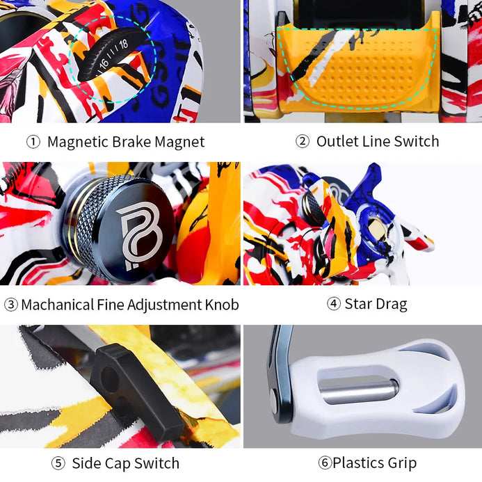 3. Innovative Drag Clicker Sound Kit-Just like many other of our products, we have also installed drag cliker kit inZUKIBO Baitcasting Reel small body,which is very rare to see on other fishing reel brands, the kit makes baitcasting reel automatically alarm"dadada"sound when fish bite the lure, help you detect every fish nibble signal no matter how small signal is,decrease the chance of loss fish
