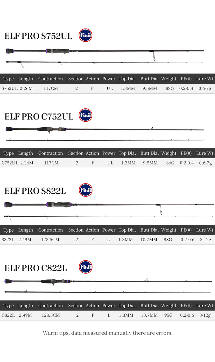 Tsurinoya ELF PRO Ultralight BFS Casting/Spinning Rod 2.26m 2PCs Lure Weight 0.6-7g