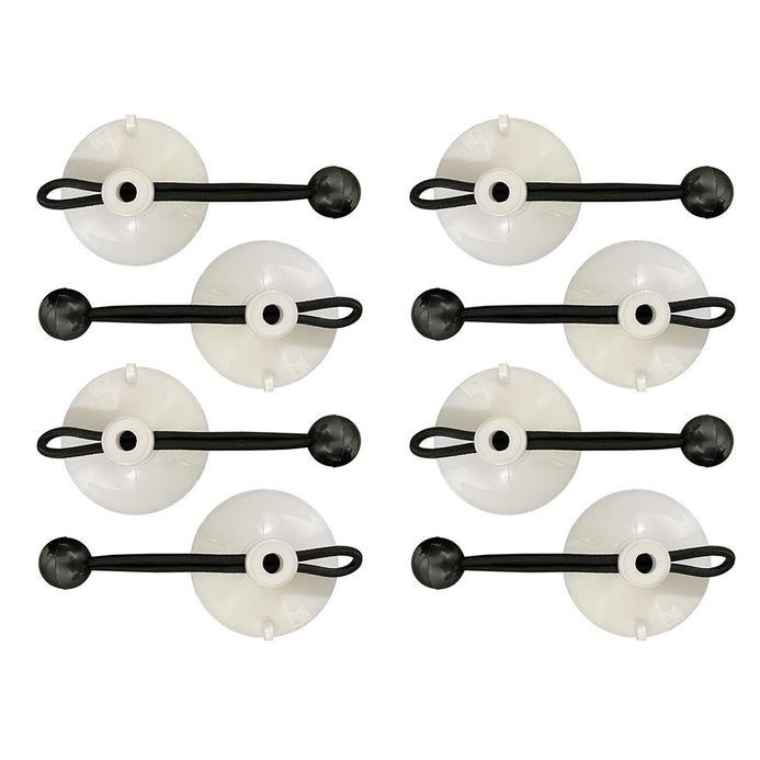 Perfect for hundreds of tie-down applications without an anchor point, cleat, or another device to anchor conventional tie-downs. Giant 3-1/4″ suction cups with toggle ball ties stick to auto finishes, smooth flat boat finishes, and windows. Great for mooring! 6″ ties stretch to 11″. Available in 4 or 8-Pack.