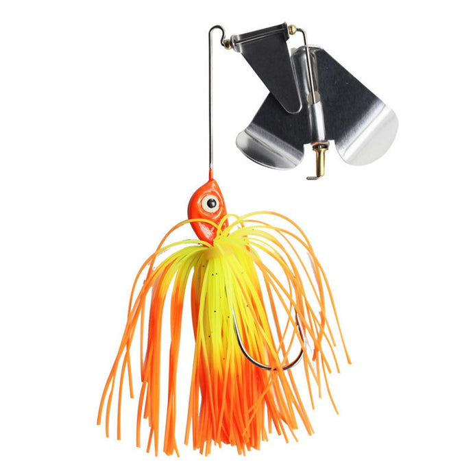 • Spinning heart-shaped glitter buzzbait lures, realistic fish heads and fringed skirts are essential tools for fishing.