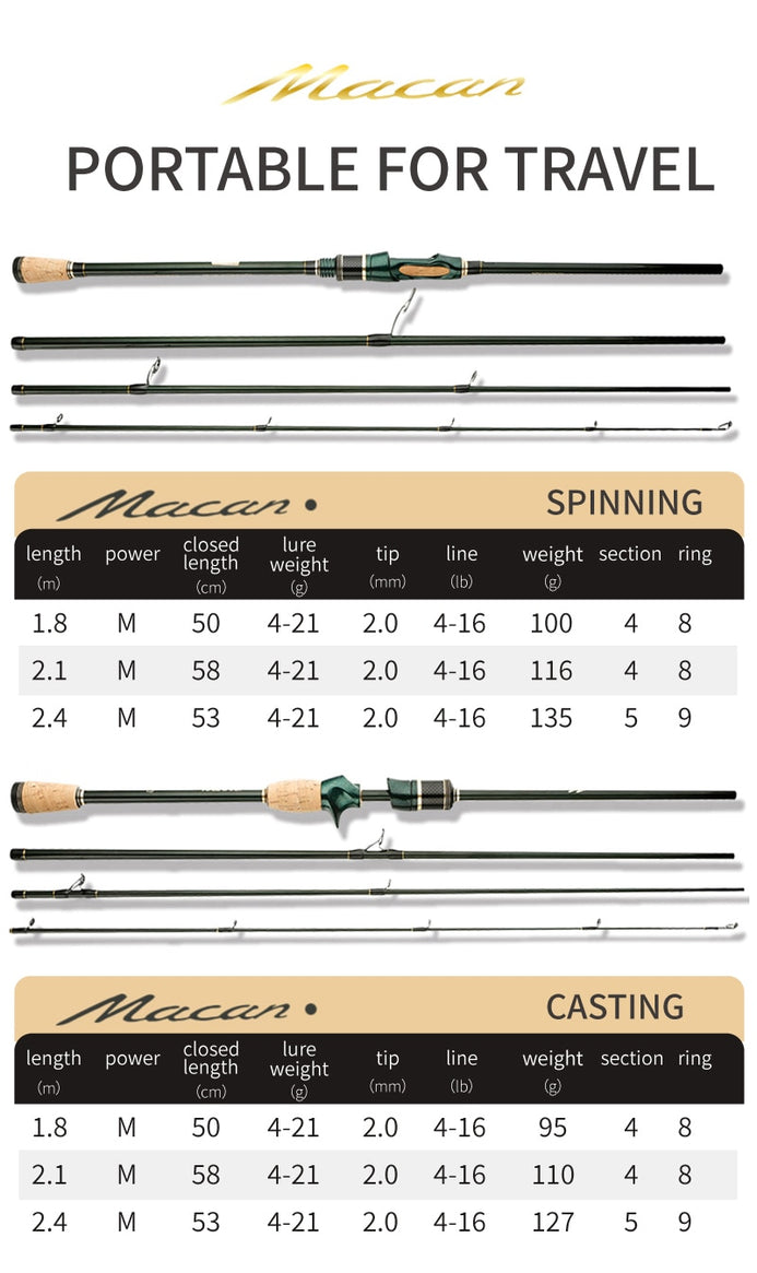 Cemreo Macan Spinning/Casting Rod 1.8m/2.1m/2.4m MF 4-5PC