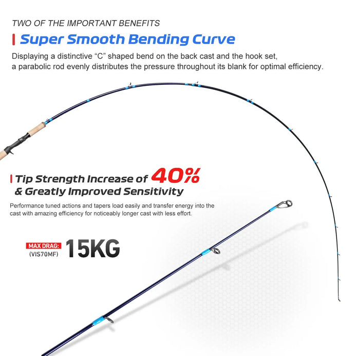 The Fast Action ls a Perfect Match For Bucktail Jig,Softbait Rig,Top Water Plugs,jerk & Twitch Bait,Live Bait.