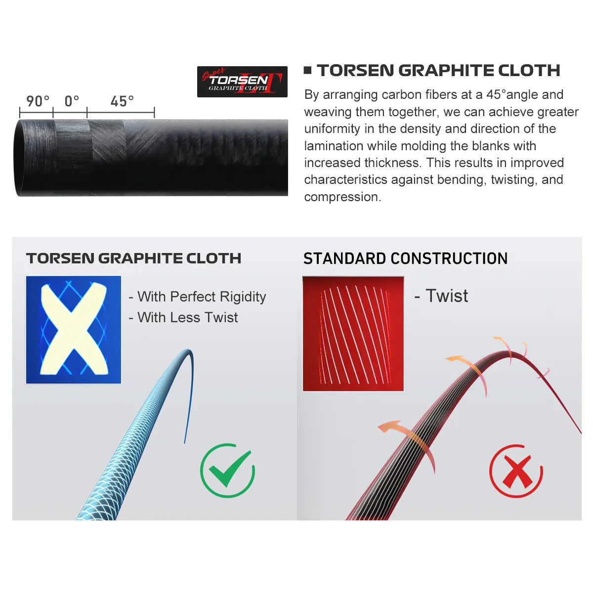 By arranging carbon fibers at a 45°angle and weaving them together, we can achieve greater uniformity in the density and direction of the lamination while molding the blanks with increased thickness. This results in improved characteristics against bending, twisting, and compression.