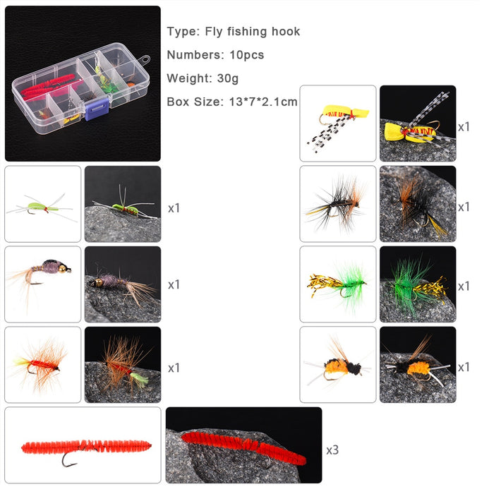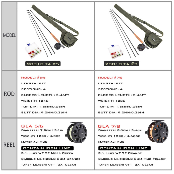 This fly combo includes a fly rod, reel with line, 10 flies, storage bag. It is designed for the new fly fisher to get started right away.