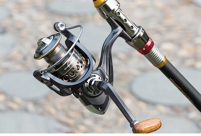 Deluxe spinning fishing reel is Left and Right handed interchangeable. It features durable metal spool, comfortable folding handle and hard body with instant anti-reverse sstem.