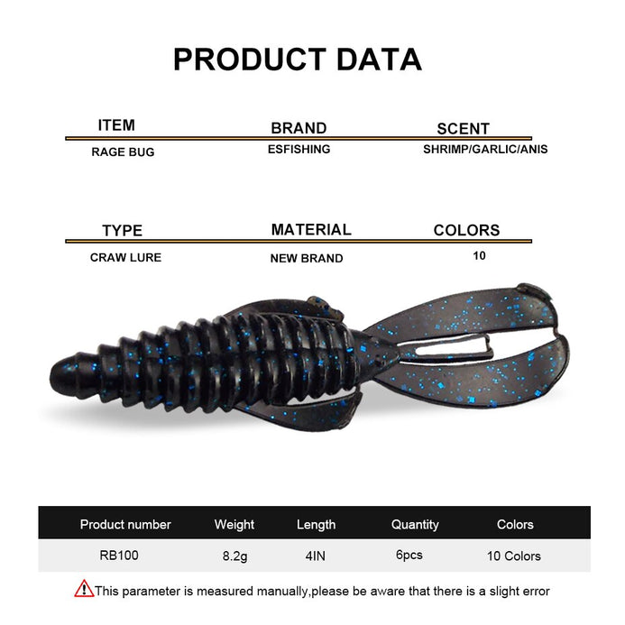 - ESFISHING Rage Bug 6Pcs/Lot 100mm Craw