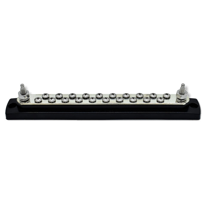 Designed for larger wiring systems, this 20-terminal busbar handles up to 150 amps. It allows you to centralize multiple connections and simplifies complex circuit layouts in marine or industrial systems.