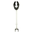 Cast aluminum head with high-strength aluminum shaft. Supports the cantilevered weight of the motor while stabilizing the engine and steering mechanisms when trailering. Varying adjustability. Includes 15″ black EPDM rubber holding strap.