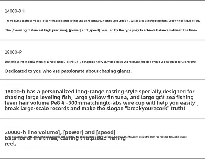 • High-Performance Drag System: The reel features an enhanced drag system with increased drag washers, providing powerful and smooth drag performance suitable for large saltwater species.