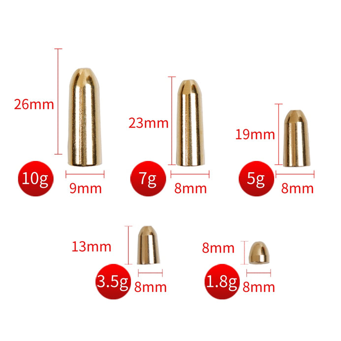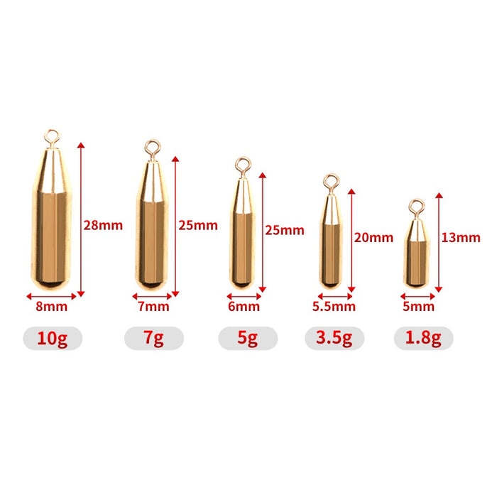 LUSHAZER 5pcs/lot 1.8g/3.5g/5g/7g/10g Cylinder Copper Dropshot Weights