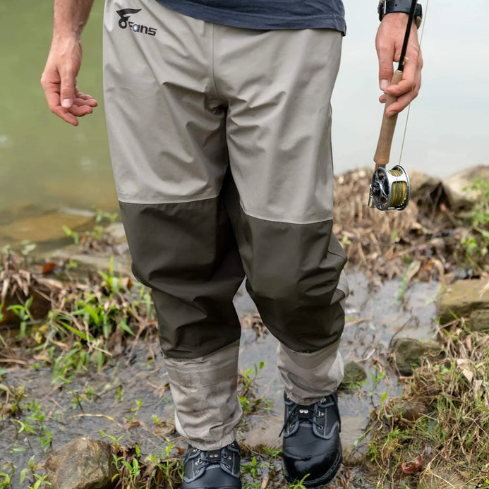 4.5mm STOCKING FOOT&REMOVABLE NEOPRENE KNEE PAD:8 Fans Wading Pants for men have Comfortable Waist-High Durable Neoprene Stocking foot which made of 4.5mm neoprene material, which are thicker than most others. Double-layer Kneepads and sturdy Stocking Foot are aimed at protecting you from scratch of gravel. The updated Fishing Pants have a Removable Neoprene Gasket that protect your knees.