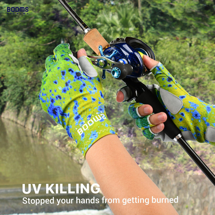 Booms Fishing's FG2 Fingerless Gloves provide a secure, comfortable fit and superior gripping ability with their spandex and microfiber construction and elastic straps. The gloves are also lightweight, quick-drying, breathable, and feature an anti microbial material to ensure breathability in any condition. These are the perfect choice for any angler.