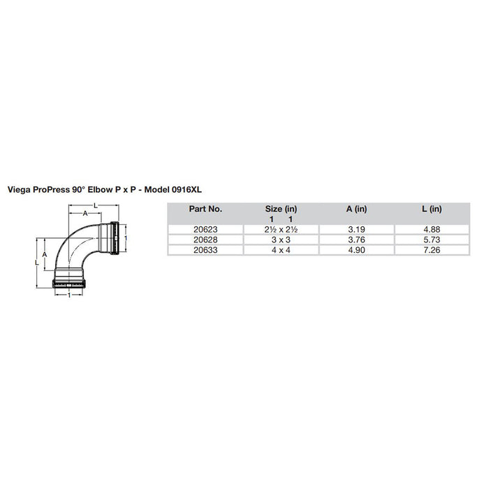 Viega ProPress 2-1/2" - 90 Copper Elbow - Double Press Connection - Smart Connect Technology