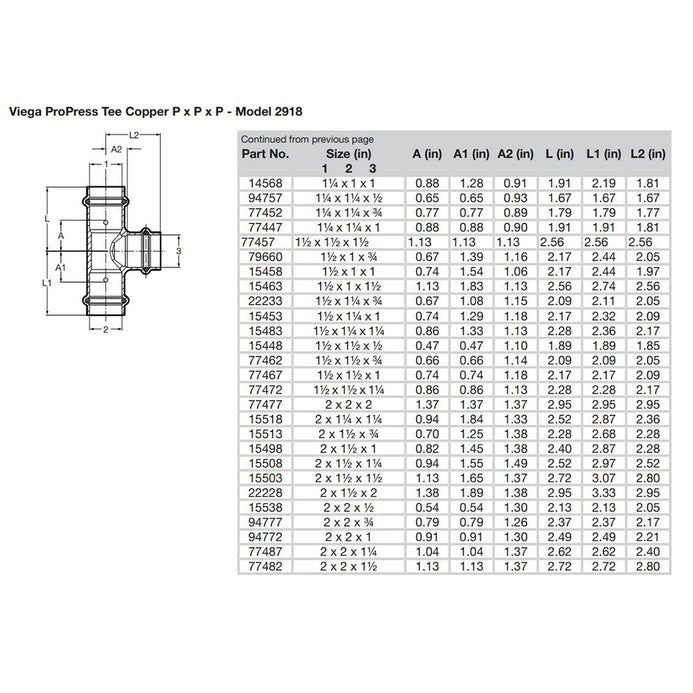 Viega ProPress 2" Copper Tee - Triple Press Connection - Smart Connect Technology