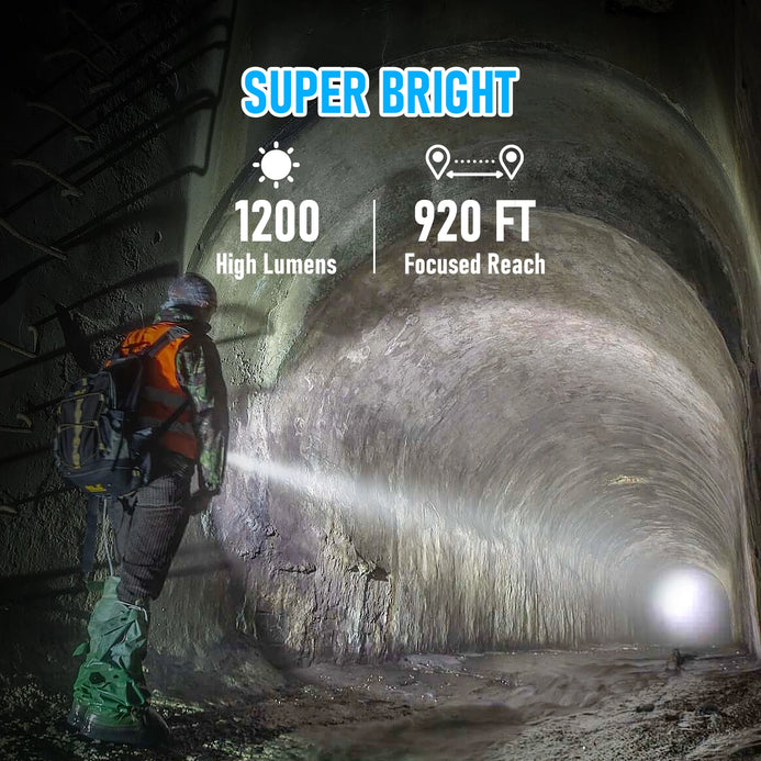 - Super Bright 1200 Lumens โ Long-range beam throws up to 280 meters (920 feet)