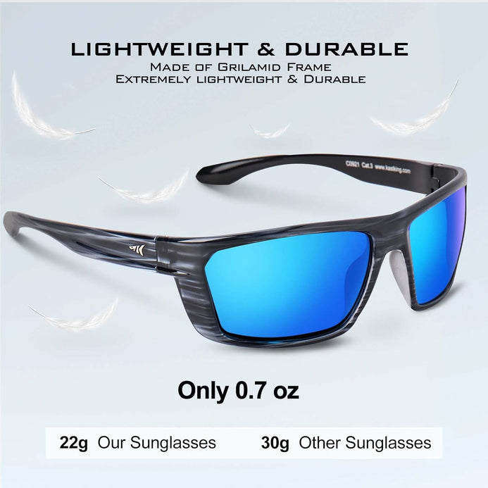 BASE LENS COLOR and UV PROTECTION – Smoke lenses are ideal for bright sunlight with the most realistic color reproduction and also work well in medium light and partial shade. Brown lenses increase contrast and depth perception, ideal for partly cloudy to sunny conditions. KastKing sunglasses block 100% of the harmful UVA and UVB rays and meet or exceed all U.S. ANSI standards.