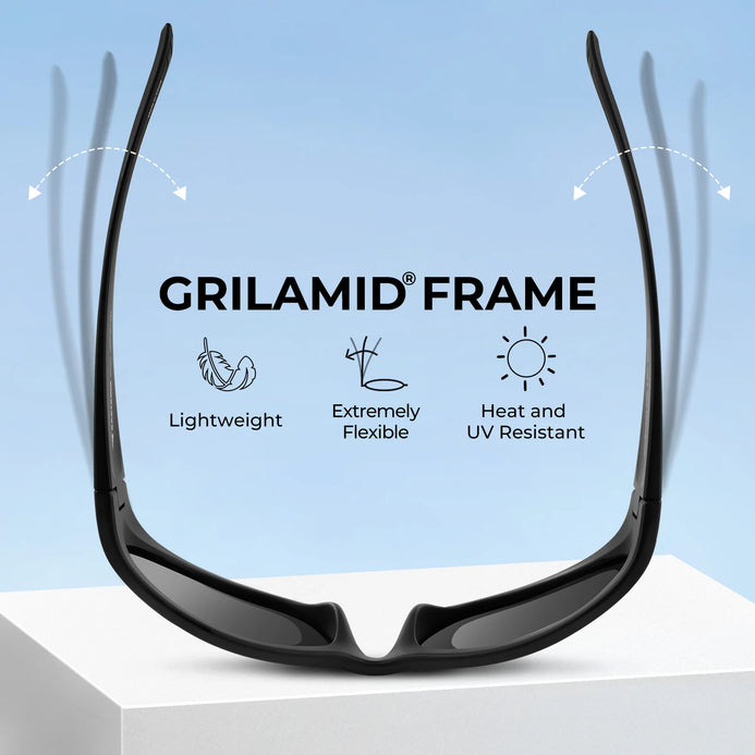 Made from the same Grilamid material commonly used in military and medical applications, KastKing sunglass frames are lightweight, extremely flexible, and heat and UV resistant. Grilamid frames are well known for their astounding strength, lightweight, comfort, shape integrity, and impact resistance. This virtually indestructible ultra-lightweight and malleable material translates to an amazingly comfortable fit and the tacky nose pads prevent slipping.
