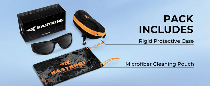 KastKing Raccoon Polarized Sport Sunglasses are design with wide temple wrap, which blocks side-light offering maximum coverage. Made from the same Grilamid material commonly used by the military and in medical applications, the frames are well known for their strength, lightweight comfort, extremely flexible, heat and UV resistant, and impact-resistance. This ultra-lightweight material translates to a very comfortable fit.