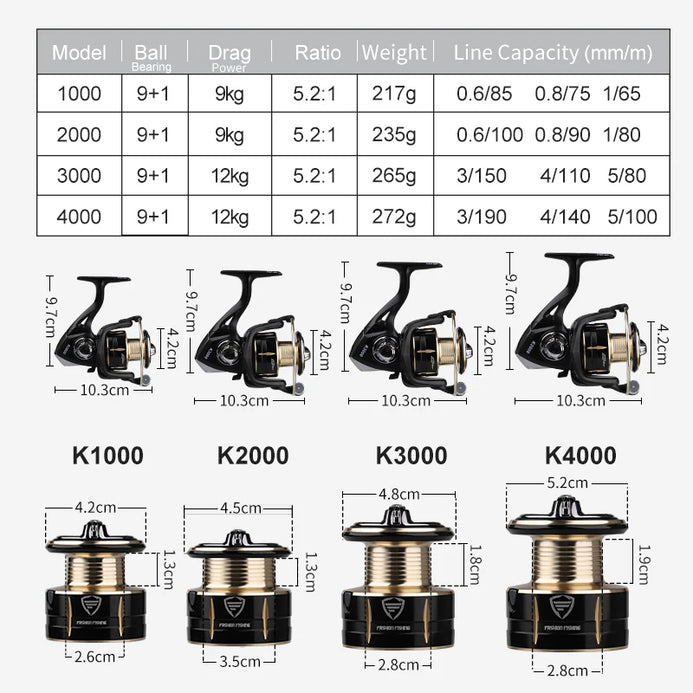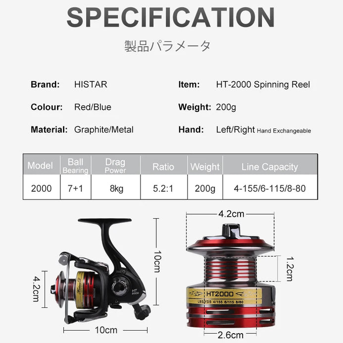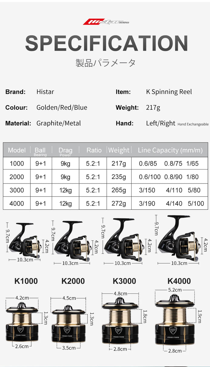 Histar K+HT Series Spininng Reel Tough 9-12KG Max Drag 5.2:1 9+1BB