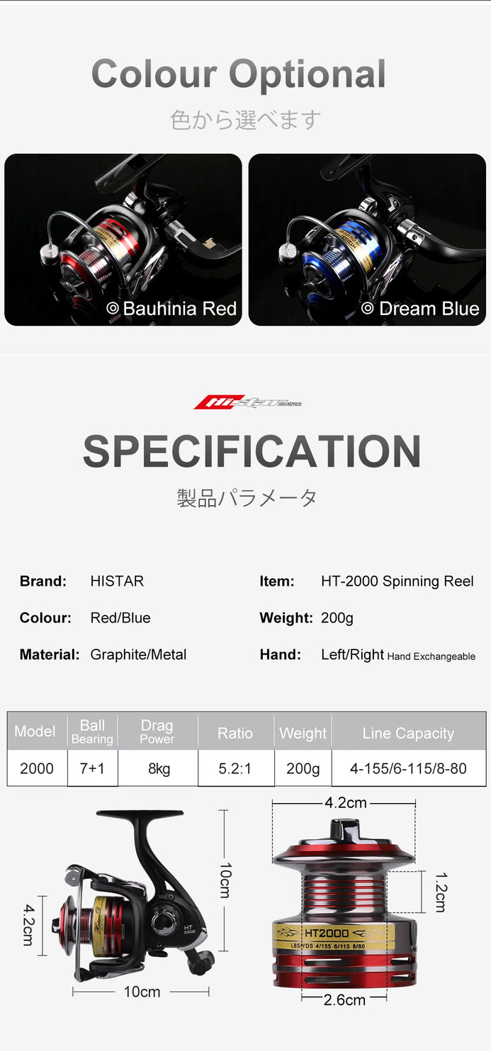 3. Red And Blue Two Colors HT Series Spinning Reel Meet Your Diversify Demands