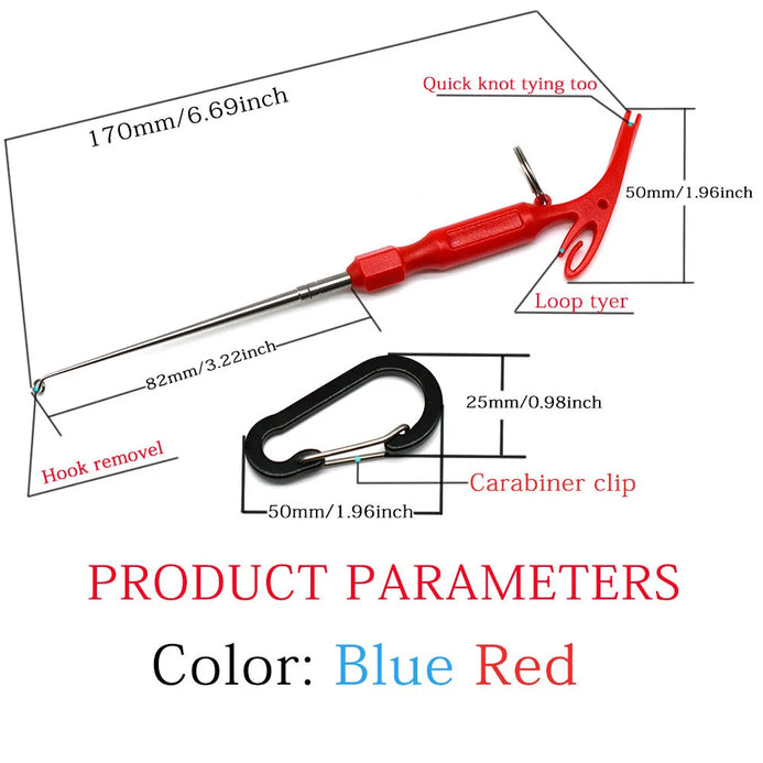 3 in 1 fishing multitool features as loop tyer, quick knot tying tool and hook remover