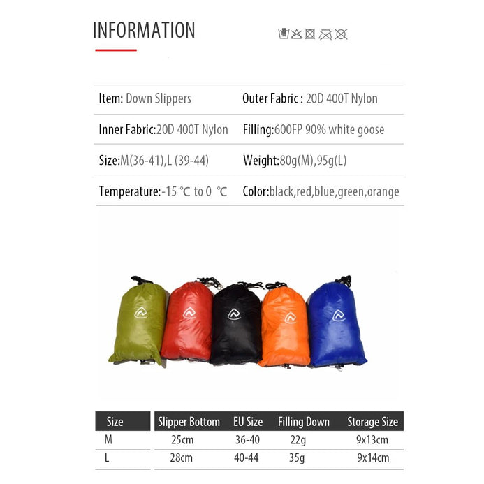Filled with 90% white duck down, lightweight, soft. Made of ultralight high density 20D 400T Nylon, waterproof.