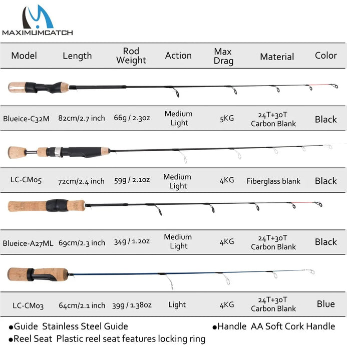 Get ready to conquer the frozen tundra with the Maximumcatch Carbon Ice Fishing Rod! Crafted from high-quality IM7 carbon fiber, this rod is durable and lightweight. With a length range of 64-82cm, it's perfect for all ice fishing conditions. Make every catch a thrilling and successful one with this powerful and versatile ice rod.