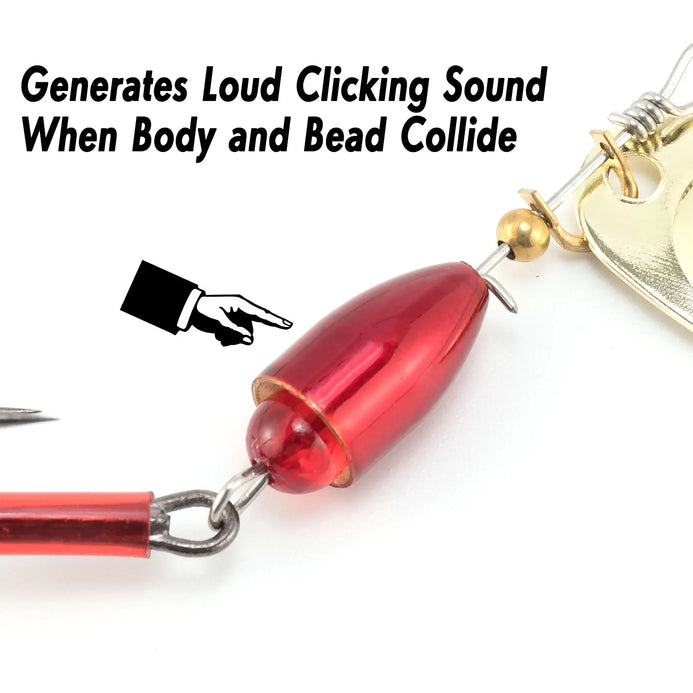 The indiana blades can rotate 360° in the water to produce water splash and flash while other metal parts collide to generate noise to attract fish.