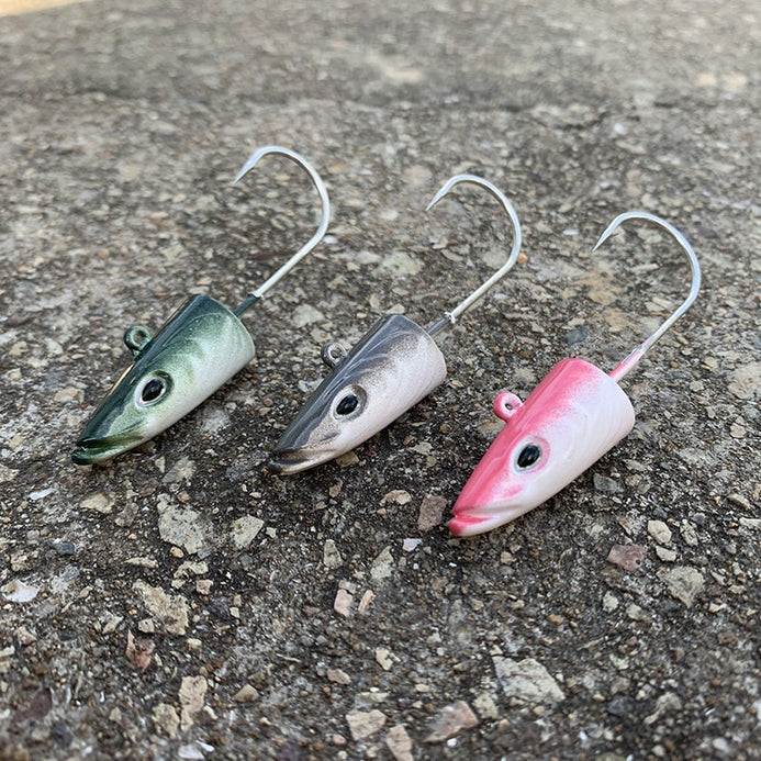 Try these realistic looking jig heads for yourself. They catch fish!