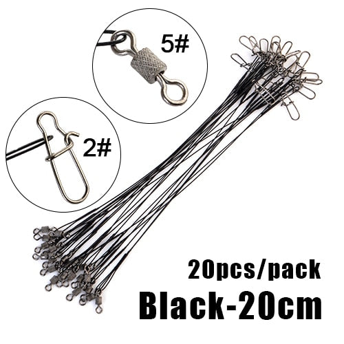 FISH KING 20pcs 16/20/25cm Anti-bite Steel Wire Leader with Swivel