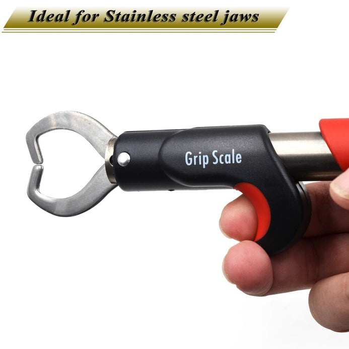 This lip grip scale is ideal for Professional Anglers. Non-slip rubber grip Integrated 25 kg scale.  Stainless steel construction for fresh or saltwater use.  ”Swivel jaws enhance control, reduce stress on both fish & angler and the non-slip rubber handle provides extra gripping power and control, even when wet.