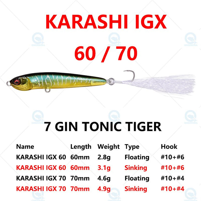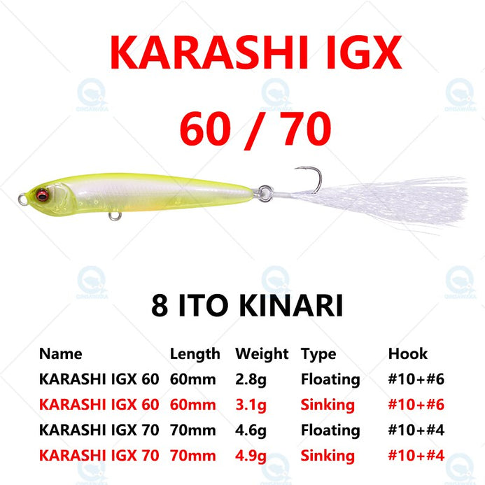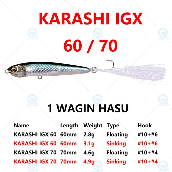 Megabass Karashi IGX 60 /70 Floating/Sinking Dynamic Lipless Jerkbait
