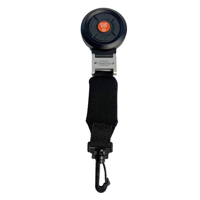 The CoastKey 5-button FOB is used to start the engine(s) remotely. The FOB also serves as a wireless kill switch and can be used for additional functions, such as remote trim/tilt.