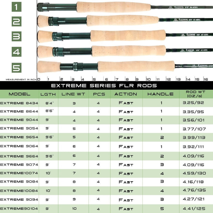 Maximumcatch EXTREME 3/4/5/6/8 WT IM8 Carbon Fiber Medium-Fast 4pc Fly Rod
