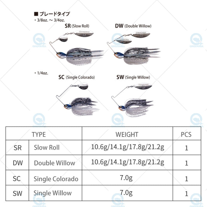 3/8oz.~3/4oz.: SR(Slow Roll) DW(Double Willow)