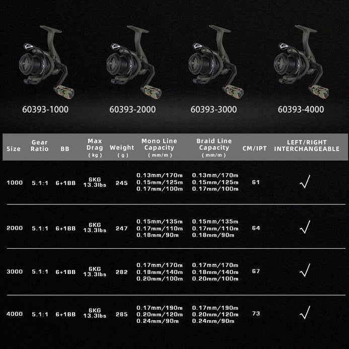 Fishing reels feature a reliable 5+1 ball bearing system for smooth and efficient operation