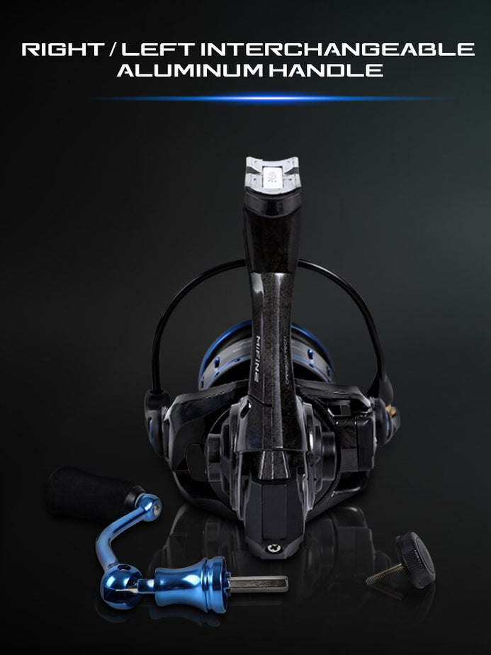 ● Aluminum Handle- Latest CNC machined aluminum handle and high-density EVA handle knobs makes you feel comfortable controlling it even in the wettest condition. Design appearance with the bright blue color scheme, Interchangeable right or left handle for your preference.