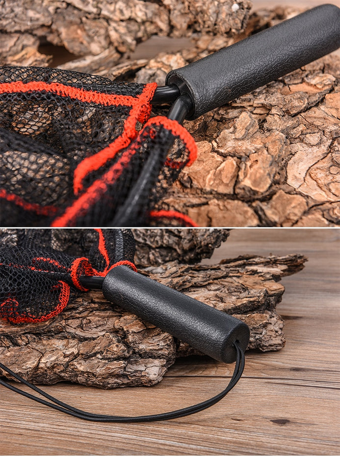 Perfect fishing net for fly fishing. Features an aluminum alloy opening frame, ABS material, 45cm length, monofilament, solid and durable.