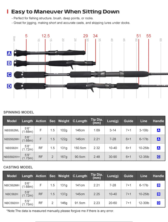 - Great for jigging, making short and accurate casts, and skipping lures under docks.